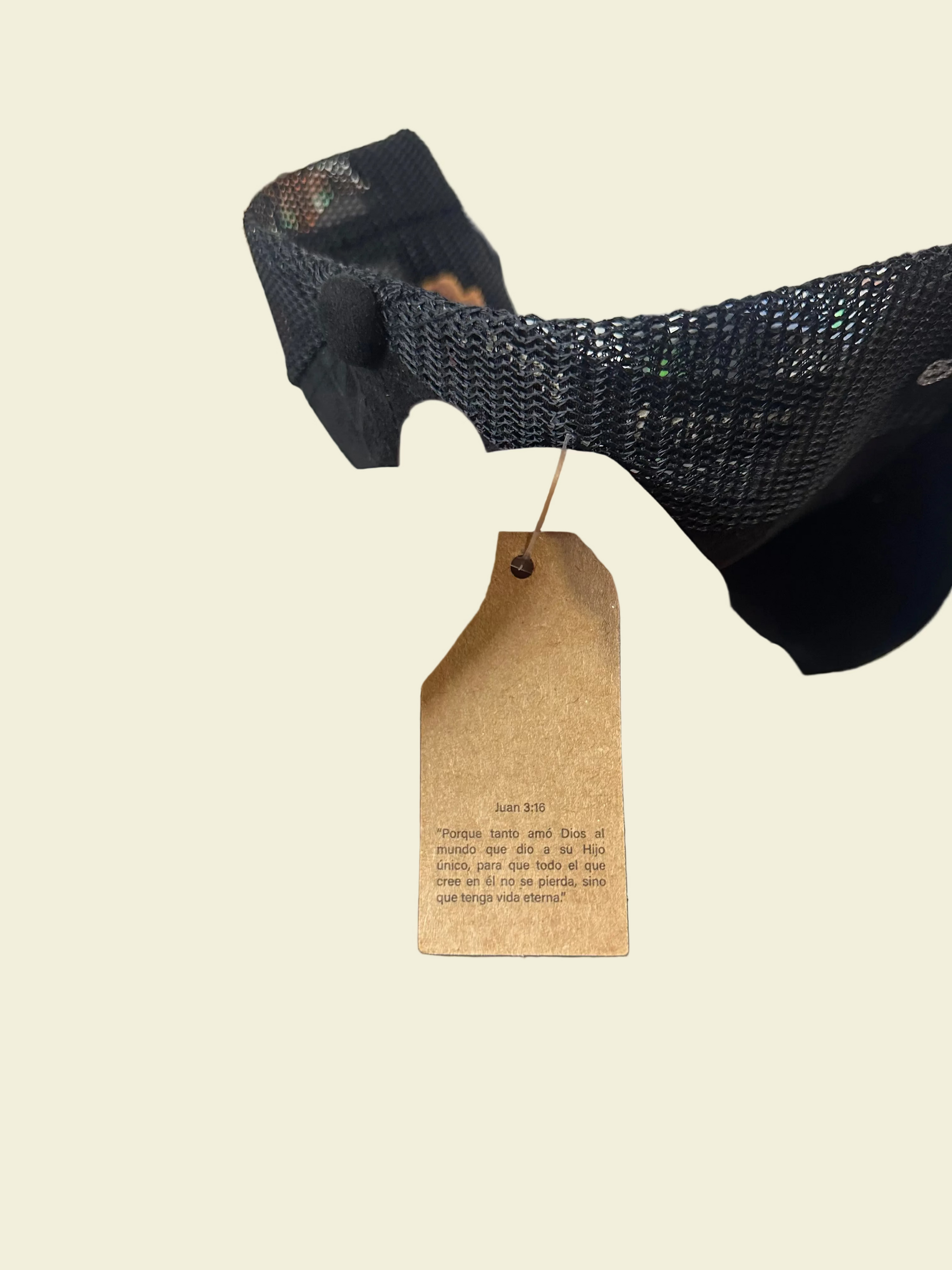 Cada gorra incluye una etiqueta especial de fe con el versículo Juan 3:16, un recordatorio de que no importa a dónde te lleve la vida, tu fe siempre va contigo: